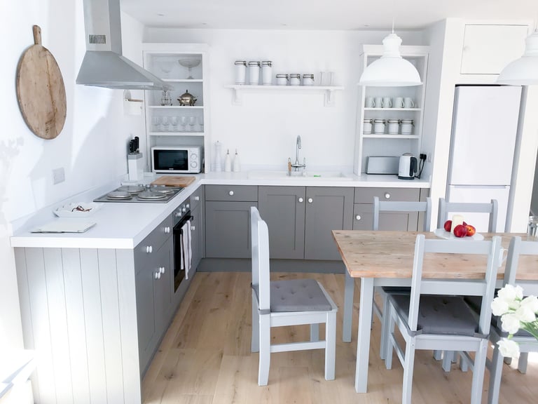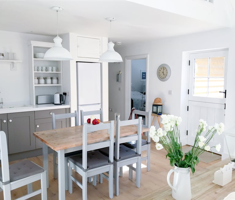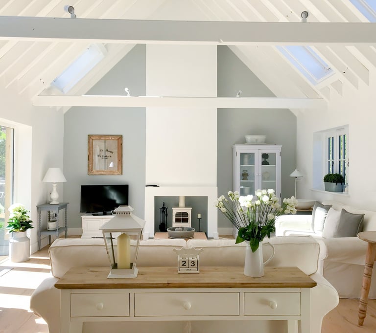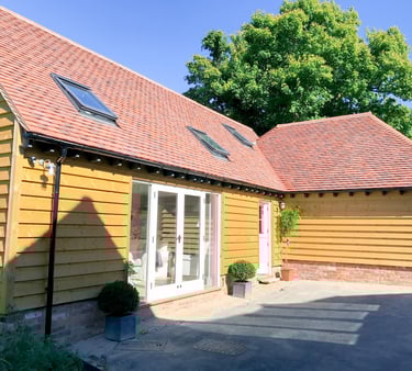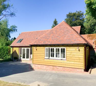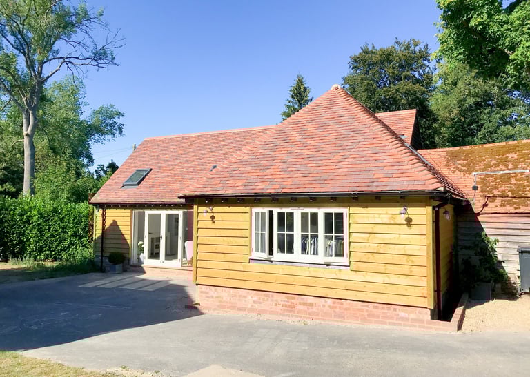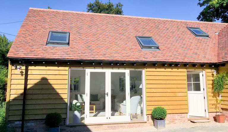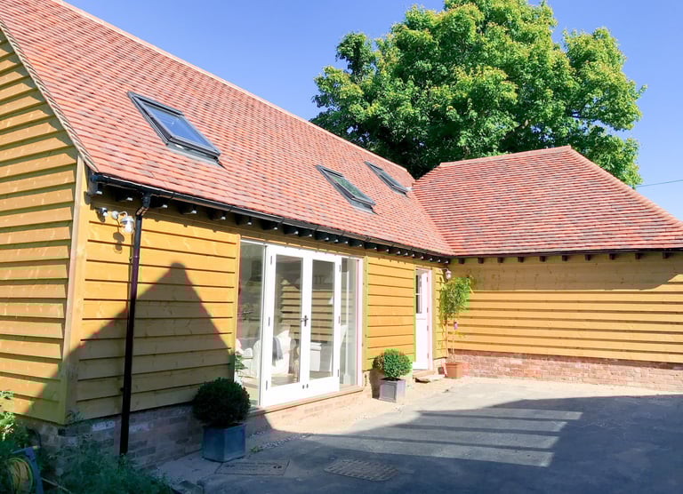 The barn conversion in Wadhurst, East Sussex underwent extensive building work to transform it into a stunning residential property. The project included the installation of new windows and doors, as well as the construction of a new roof. The interior was completely refurbished to create a modern living space, whilst still retaining the original character of the barn. The use of high-quality materials, such as exposed beams and vaulted ceilings, added to the overall aesthetic and created a bright and spacious atmosphere. The property now boasts a spacious open plan kitchen/living area, comfortable bedrooms, and a luxurious bathroom. The end result is a beautifully restored barn conversion that seamlessly blends traditional charm with contemporary living.