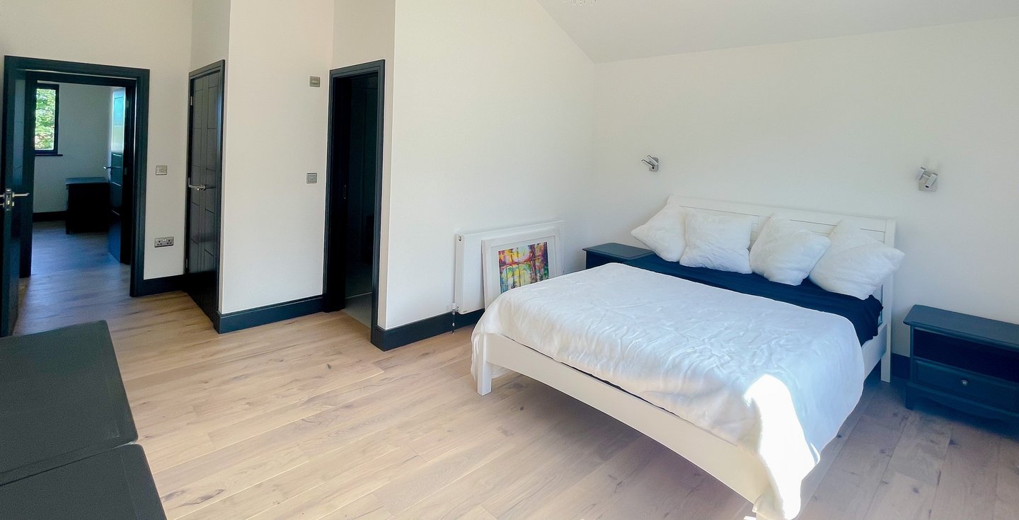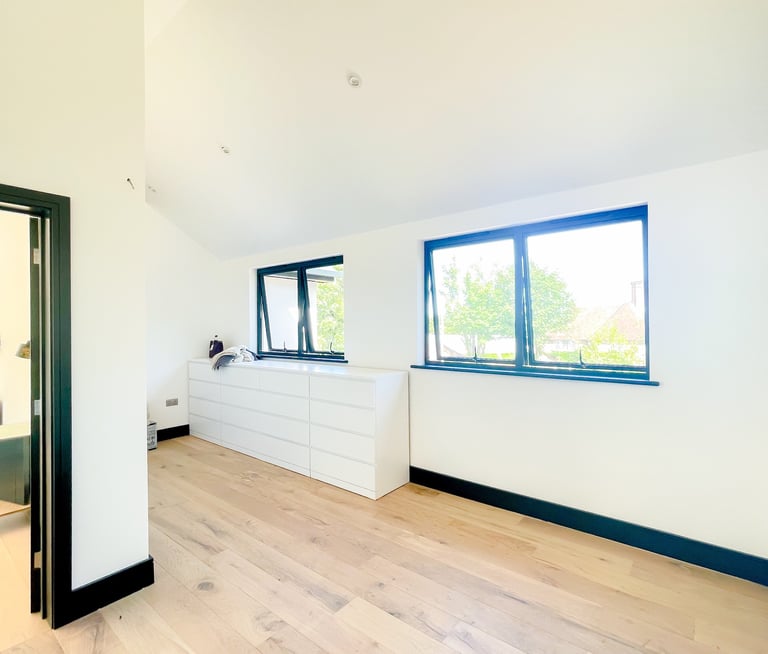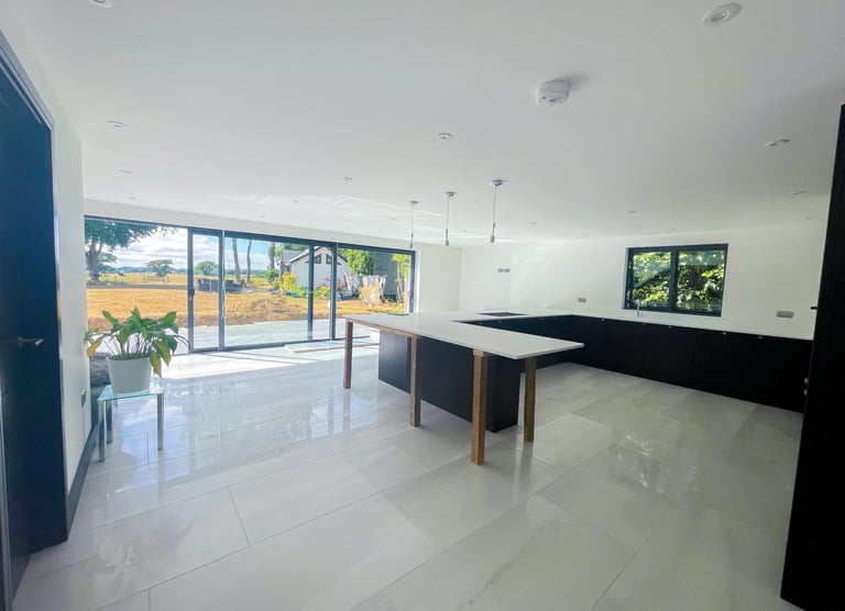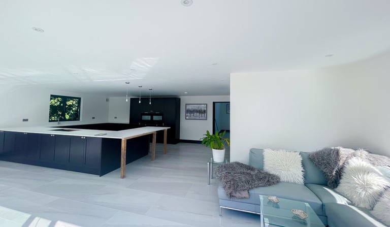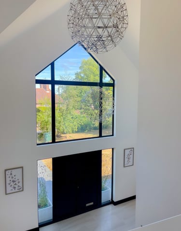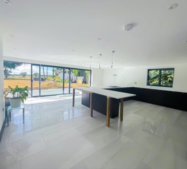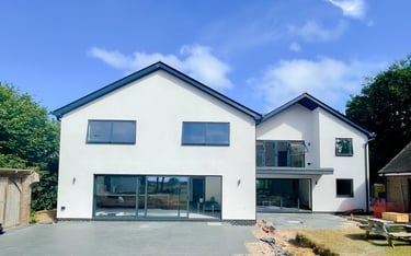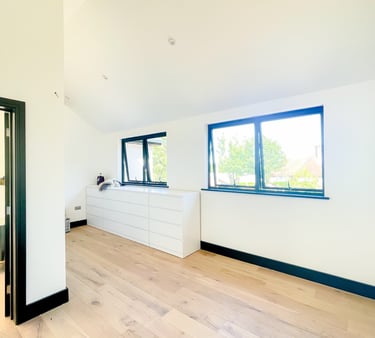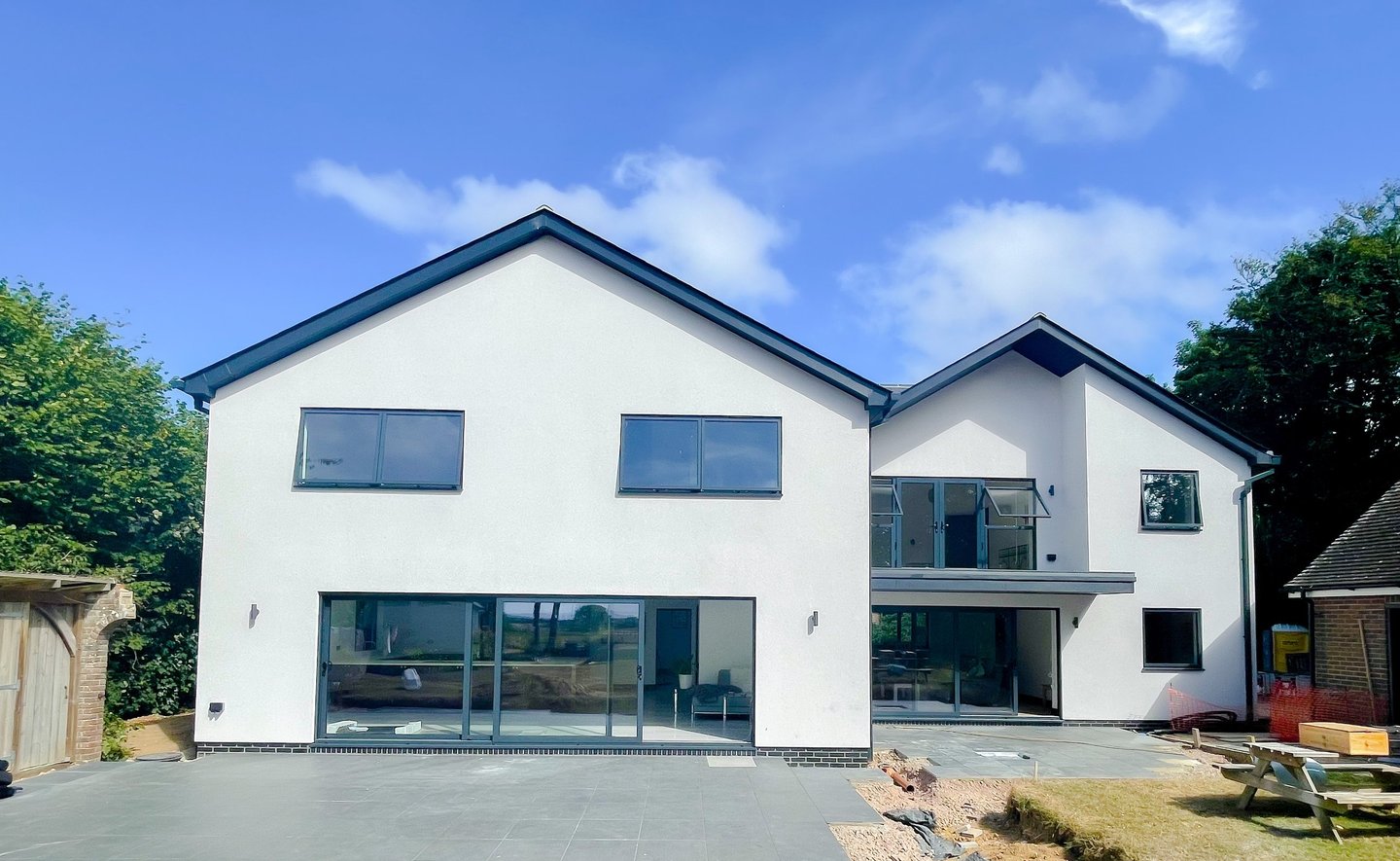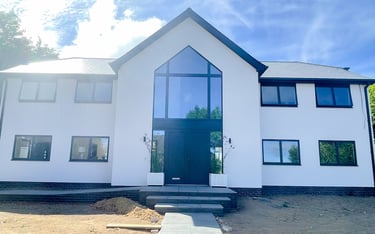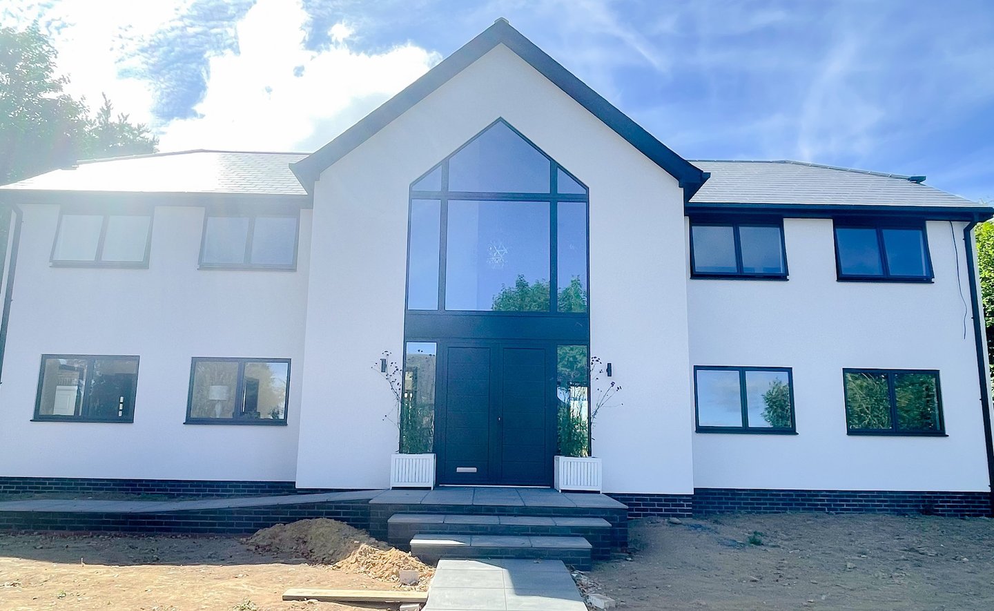 A stunning modern new build in Herstmonceux, East Sussex expertly project managed and featuring excellent carpentry work completed by our talented team. This stunning home boasts high ceilings and engineered oak flooring throughout, creating an open and airy atmosphere. The striking glass apex window at the front of the house floods the space with an abundance of natural light. The sleek design and careful attention to detail make this home a true standout.