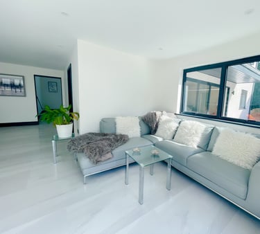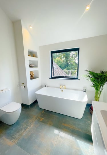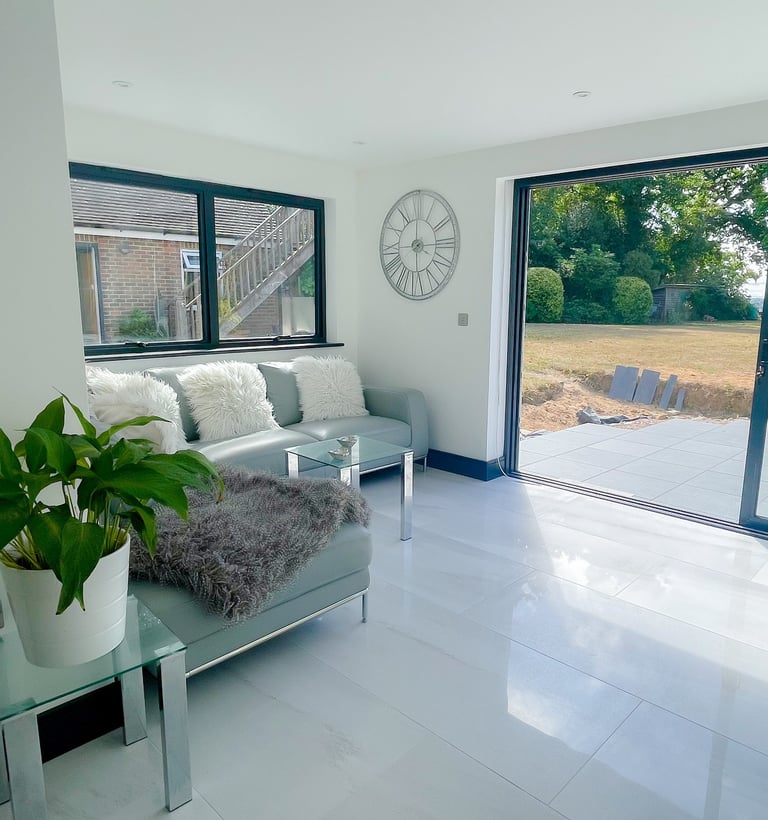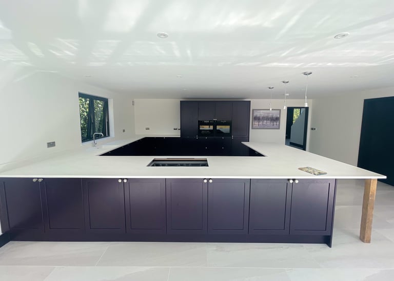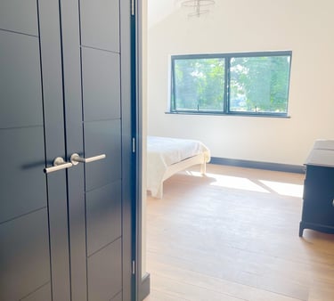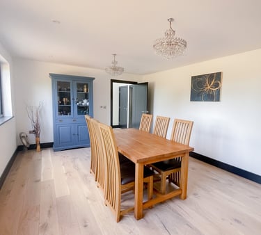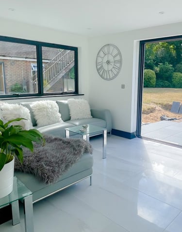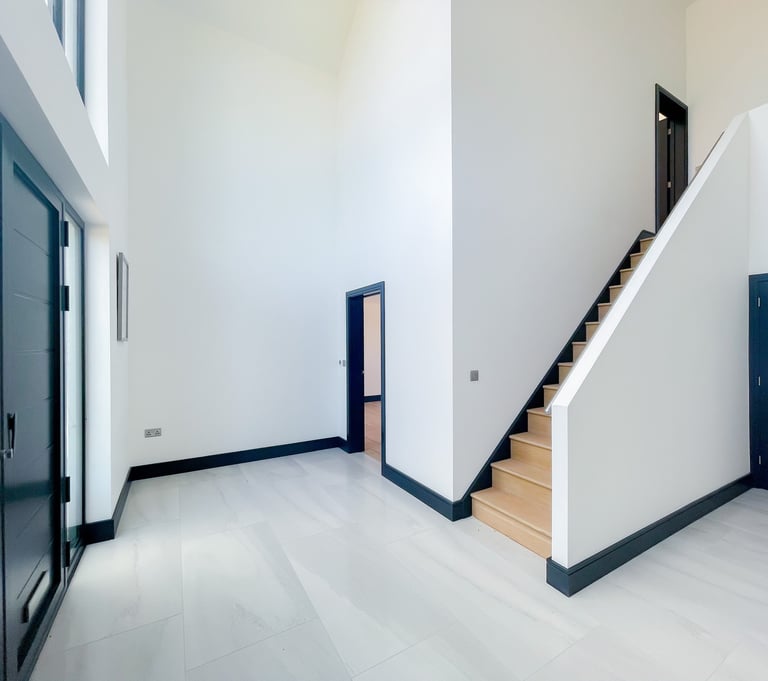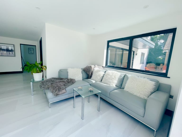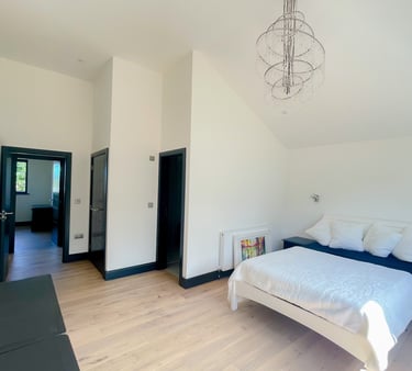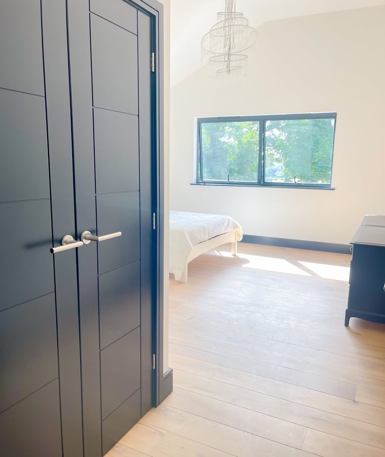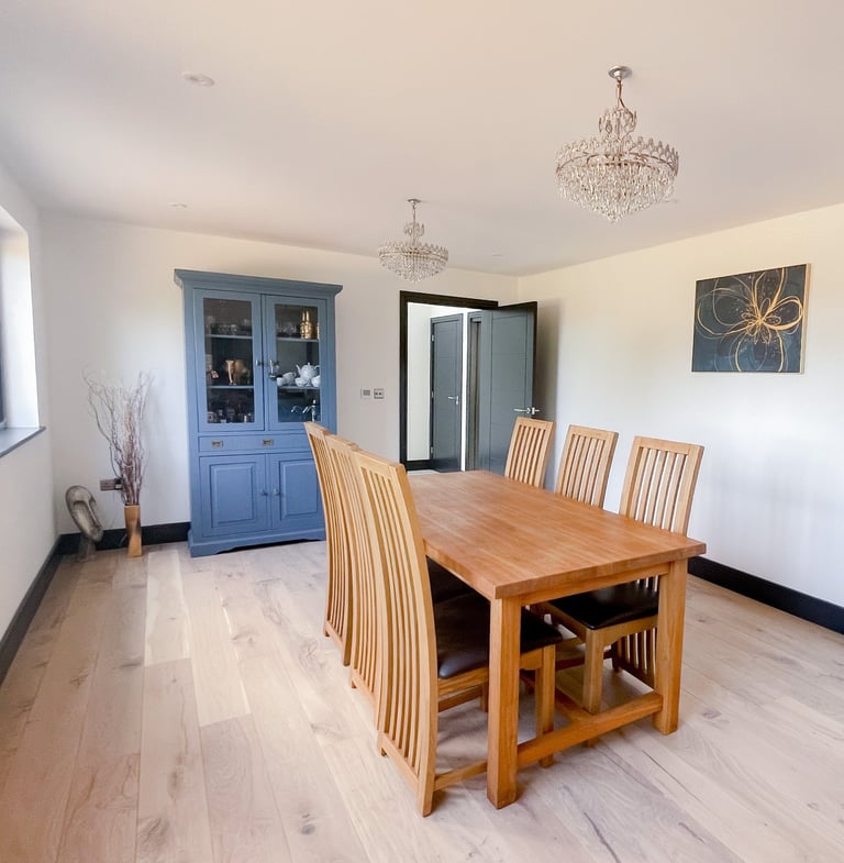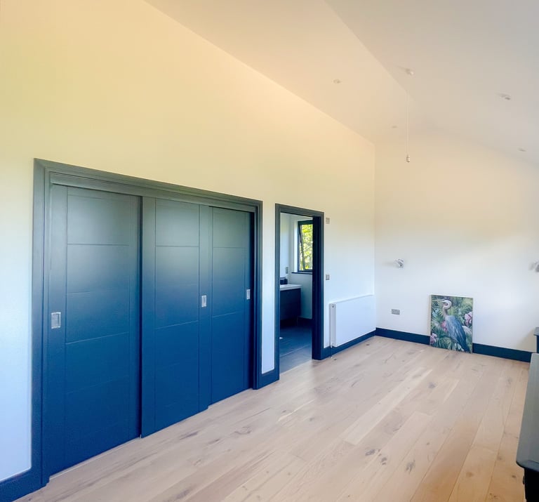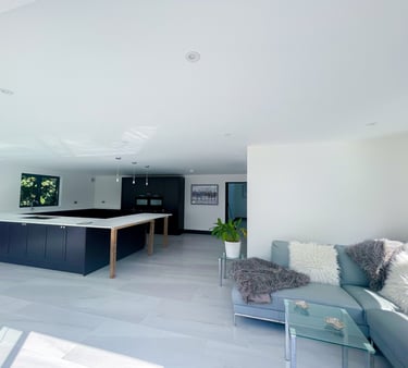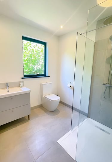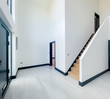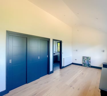 A stunning modern new build in Herstmonceux, East Sussex expertly project managed and featuring excellent carpentry work completed by our talented team. This stunning home boasts high ceilings and engineered oak flooring throughout, creating an open and airy atmosphere. The striking glass apex window at the front of the house floods the space with an abundance of natural light. The sleek design and careful attention to detail make this home a true standout.