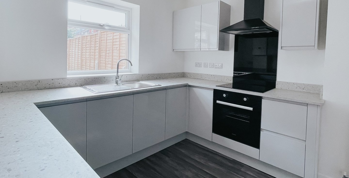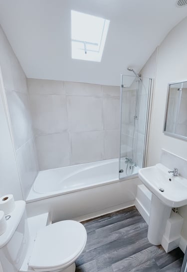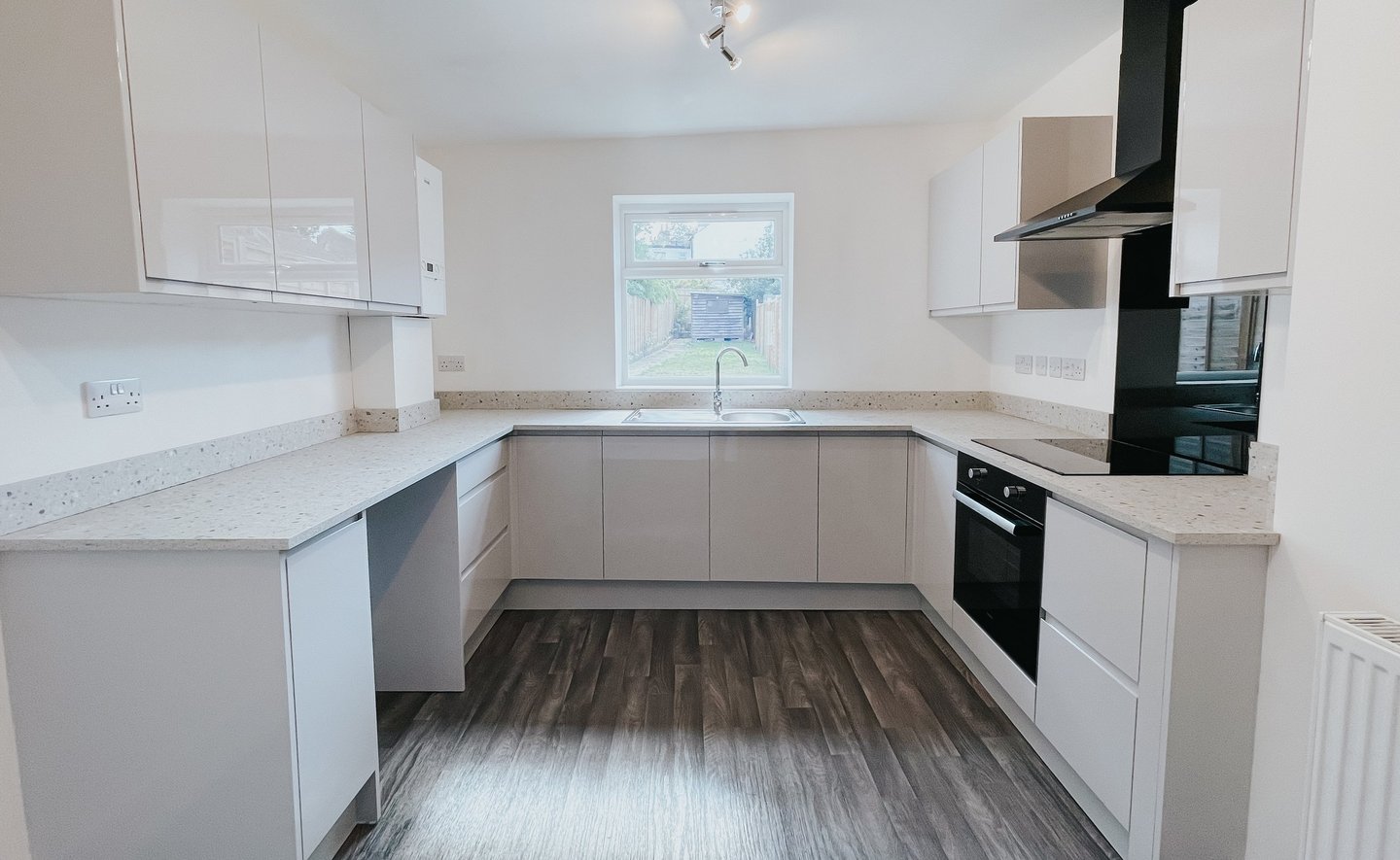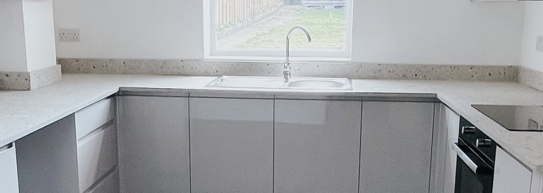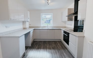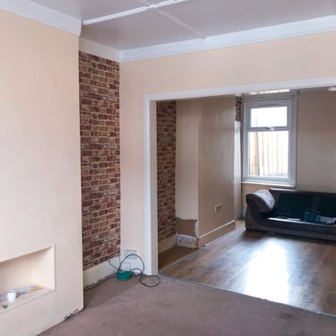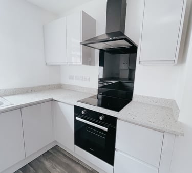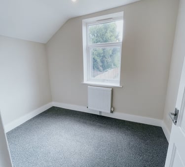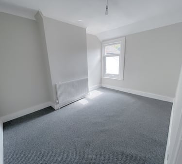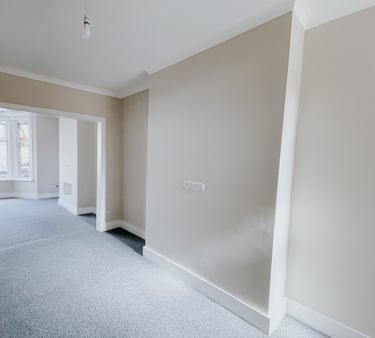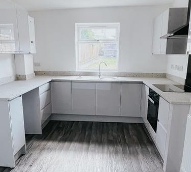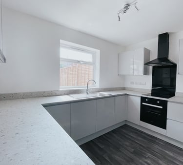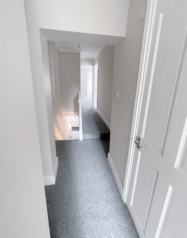 This renovation project transformed a neglected property into a safe, modern, and functional living space, all within a tight budget. The house required extensive work, including addressing crumbling plaster, damaged flooring, layout inefficiencies, and safety hazards. We began by completely stripping the property, reconfiguring the layout to maximise space and functionality. The home was rewired, replumbed, replastered, and redecorated, ensuring it met fire regulation standards and was ready for letting. Outside, we removed the rotten decking, repaired the fencing, and added grass to where the decking once was. The result is a fully refurbished property that combines safety, style, and practicality, all while staying within budget.